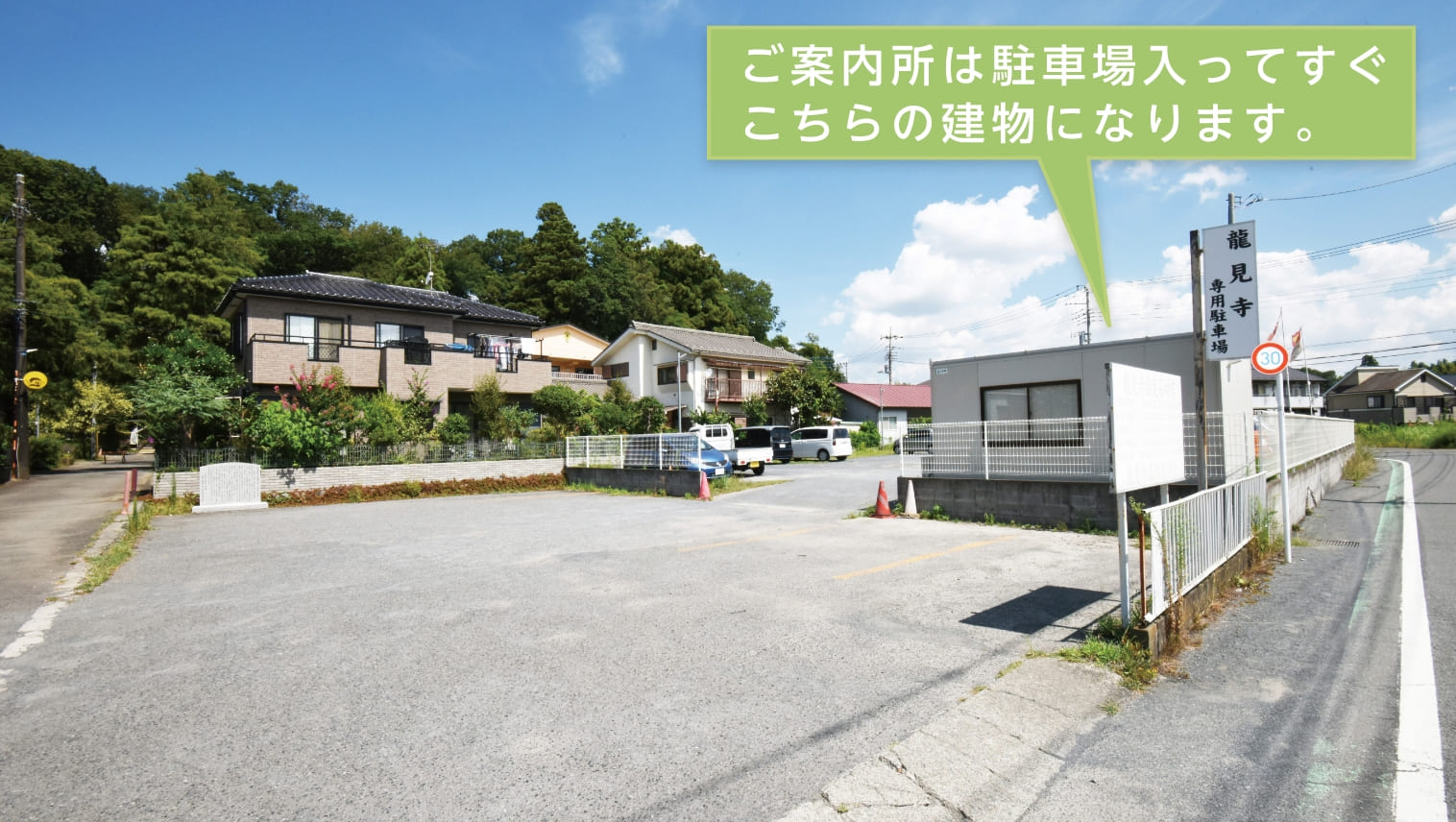 園内には、全台平置きの駐車場を完備しています。複数台、駐車可能ですので、お彼岸の時期でも、安心してお車でご来園いただけます。